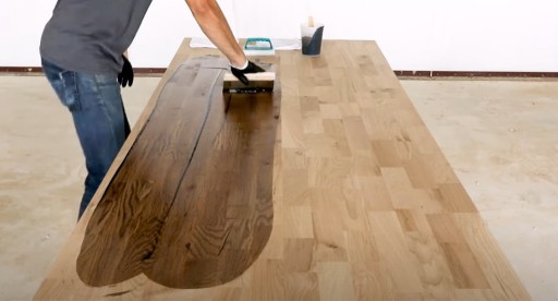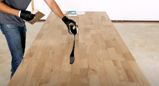 Powierzchnia zabezpieczona olejem Rubio Monocoat Oil Plus 2C wykazuje wysoką odporność na wodę i ciepło, co sprawia, że idealnie nadaje się do wykańczania drewna stosowanego w kuchni czy łazience.