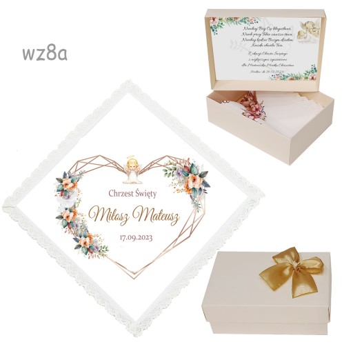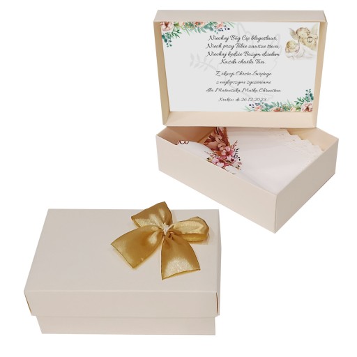 Zapraszamy do zapoznania się z naszym wyjątkowym pudełkiem na szatkę, które jest nie tylko praktyczne, ale również stanowi elegancki element pamiątki chrztu. To doskonały sposób na przechowywanie i ochronę delikatnej szatki dla Waszego małego skarbu.