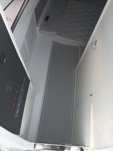 W standardzie oferowane jest pokrycie tekowe pokładu i platform rufowych, co dodaje mu większej elegancji. Wszystkie poduszki zewnętrzne wykonane są z pianek o zamkniętych komórkach, które nie ulegają impregnacji nawet po wpadnięciu do wody. Opcjonalnie pałąk można połączyć z markizami dziobowymi i rufowymi. Pokłady słoneczne są dwa, bo na łodzi tej klasy komfort musi być gwarantowany każdemu!
