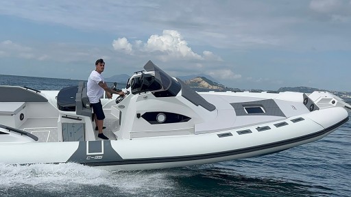 Ten RIB może być napędzany parą silników zaburtowych o mocy 350 HP wyrażając całą swoją werwę dzięki kadłubowi zaprojektowanemu do nawigacji na duże odległości.