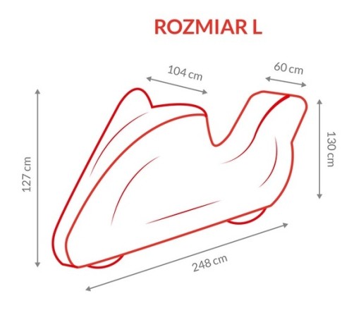 Pokrowiec w przedniej oraz tylnej części posiada solidne gumy ściągające o grubości 1.5cm dzięki czemu idealnie dopasowuje się do kształtu motocykla.