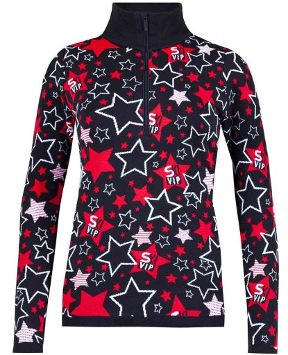 Mamy do zaoferowania damską bluzę termoaktywną w kolorze czarnym z białymi i czerwonymi dodatkami.
