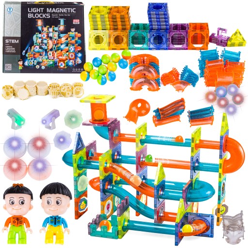ŚWIECĄCE KONSTRUKCYJNE KLOCKI MAGNETYCZNE dla dzieci TOR na KULKI 3D 292 el