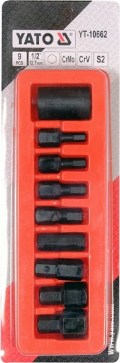 Zestaw 9 udarowych kluczy trzpieniowych HEX 1/2".