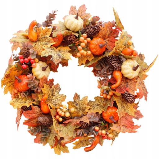 Wszechstronny wieniec jesienny - To nie tylko wieniec na drzwi wejściowe Dzięki tradycyjnemu odcieniowi ten jesienny wieniec nadaje się do zastosowania na drzwi wejściowe, okno, kominek, ścianę, biuro, sklepy detaliczne itp