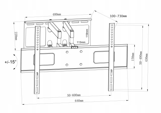 - Bardzo długie 73 cm ramiona - pozwolą na obrót telewizora o dowolny kąt. Obrót telewizora nie będzie już blokowany przez zbyt krótkie ramię