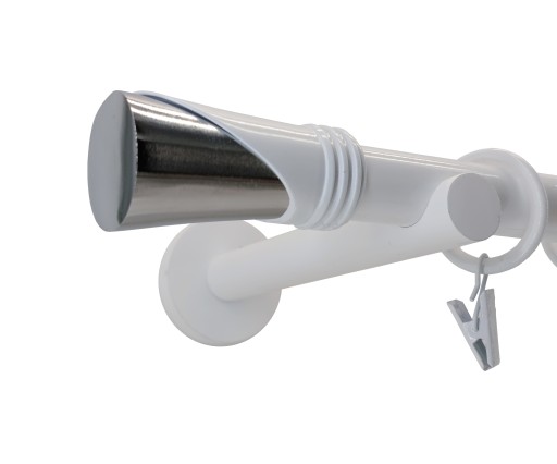 Podana cena dotyczy kompletnego karnisza pojedynczego w kolorze BIAŁYM o średnicy fi19mm i długości 140 cm z prostą końcówką VEGA.