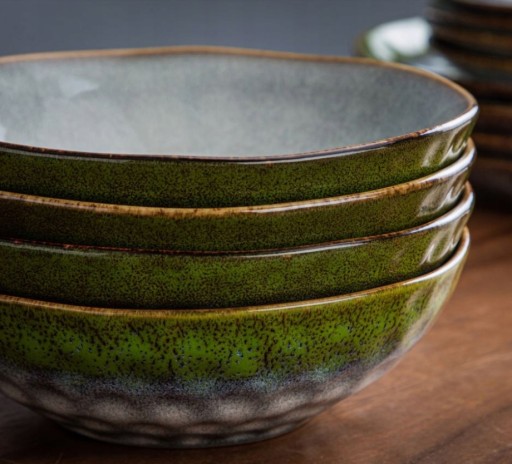 Nieregularna krawędź, wklęsłości i wypukłości sprawiają iż zastawa ma czysty i naturalny styl.