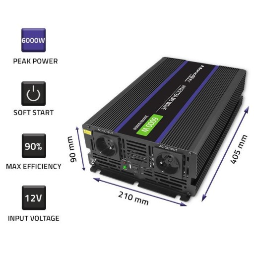 Przetwornica napięcia Monolith 6000 MS Wave | 12V na 230V | 3000/6000W | USB