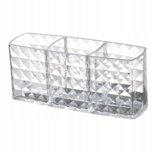Zajmuje bardzo mało miejsca na blacie toaletki z 3 przegródkami na oddzielenie pędzli do makijażu od ołówków i kredek do ust.