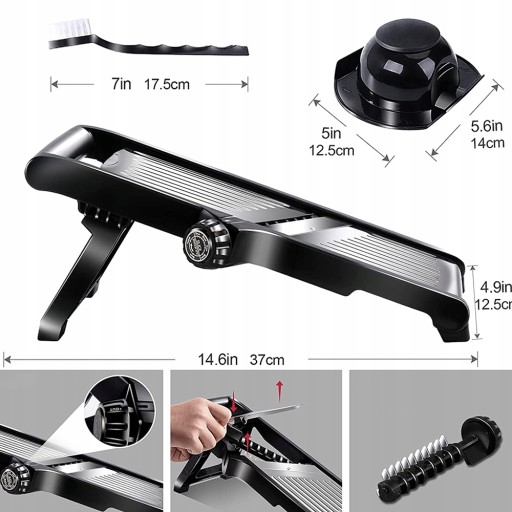 nasza profesjonalna krajalnica do mandoliny wykonana jest z wysokiej jakości stali nierdzewnej, która jest przeznaczona do kontaktu z żywnością i bardzo trwała. Daje rozdrabniaczowi solidną konstrukcję, która z łatwością zapobiega jego zginaniu lub deformacji.