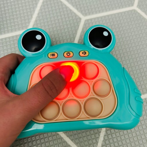 - GRA jest łatwa i ciekawa do grania. Przyciski mają dźwięk i światło podczas gry. Wystarczy nacisnąć podświetloną bańkę zgodnie z pamięcią. Idealny do treningu pamięci dziecka.