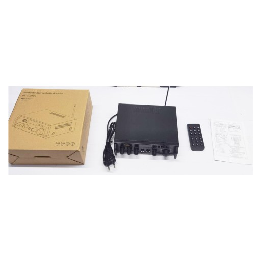 Wzmacniacz audio Bluetooth kompatybilny z dwoma pasywnymi głośnikami 4-16 Ω. Wzmacniacz mocy z pilotem do zdalnych ustawień audio, odczytuje karty SD i odtwarzacz MP3 USB, obsługuje połączenie bezprzewodowe BT, z wtyczką amerykańską dla łatwej obsługi, idealny do systemu kina domowego.