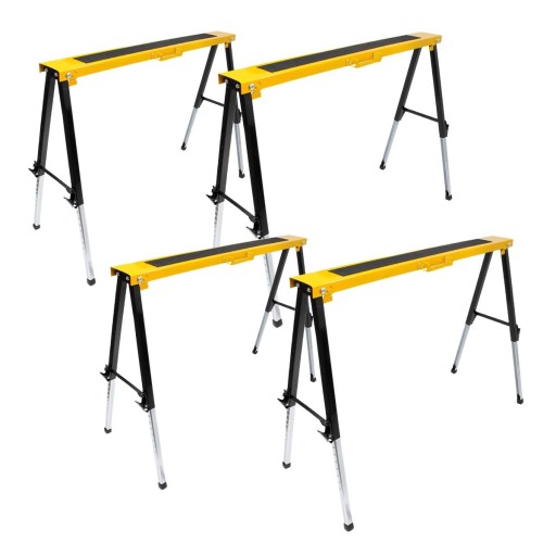 Zestaw kozłów roboczych o nośności 275 kg, optymalny do pracy z różnicami wysokości na schodach, platformach lub nierównym terenie!