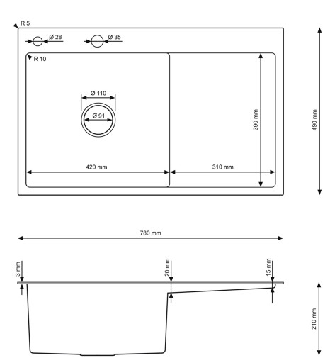 Powierzchnia gładka zlewozmywaka zlewozmywaka zapobiega rysowaniu się powierzchni.