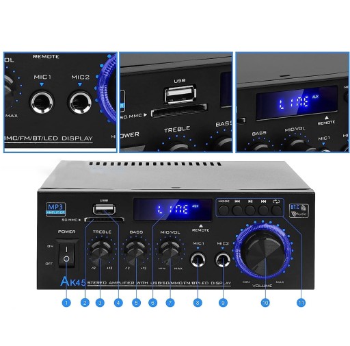 ДИНАМИК УСИЛИТЕЛЬ BLUETOOTH 5.0 АУДИОПЛЕЕР С ПУЛЬТОМ ПУЛЬТА ДУ