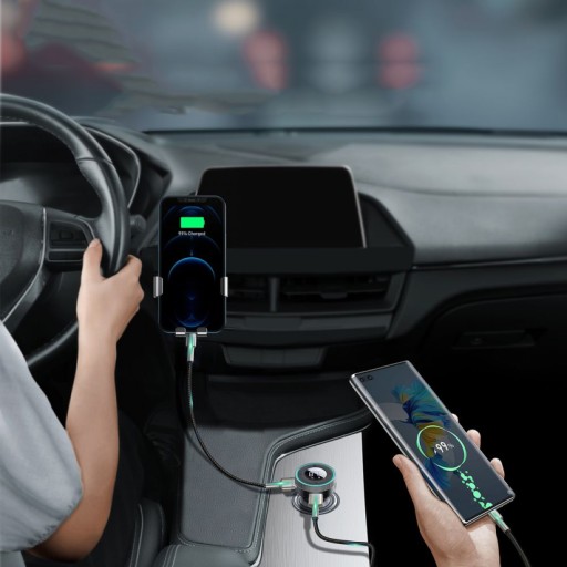 Dzięki ładowarce zasilanej z gniazda zapalniczki możesz jednocześnie naładować drwa urządzenia, które są zasilane z gniazda USB. Możesz jednocześnie słuchać muzyki i zasilać smartfon, tablet, nawigację GPS i inne sprzęty.