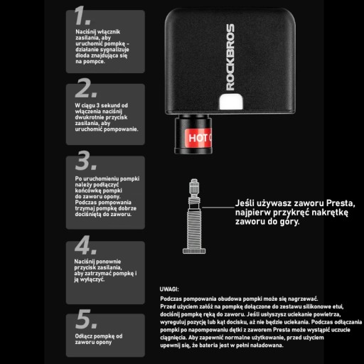 WAŻNE ! Podczas pompowania pompka będzie gorąca. Proszę założyć silikonowe etui ochronne dołączone razem z pompką.