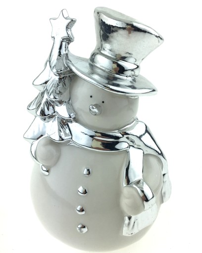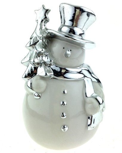 СНЕГОВИК С РОЖДЕСТВЕНСКОЙ ЕЛКОЙ СЕРЕБРЯНЫЙ БЕЛЫЙ 16см ПРЕМИУМ ФИГУРКА