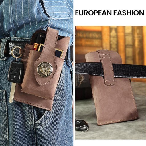 Skórzana kabura na telefon Multitool z uchwytem na klucze do telefonu komórkowego w kolorze khaki