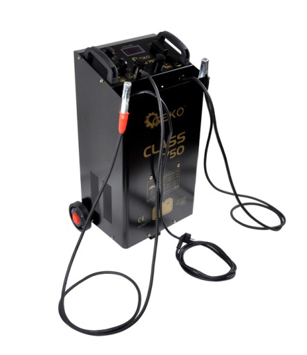 Urządzenie rozruchowe serii Class 750 renomowanej firmy GEKO przeznaczone jest do wspomagania rozruchu oraz ładowania akumulatorów ołowiowo-kwasowych o napięciu 12V lub 24V, stosowanych m. in. w samochodach ciężarowych oraz maszynach budowlanych, a także do rozruchu silników spalinowych w przypadku całkowitego rozładowania akumulatora lub bardzo niskich temperatur otoczenia.Prostownik wyposażony został w wyłącznik termiczny, który w momencie przegrzania się transformatora wyłącza układ.