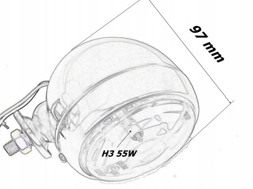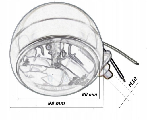 Głębokość lampy 97mm, średnica 98mm, średnica samego klosza 80mm, śruba mocująca m10.