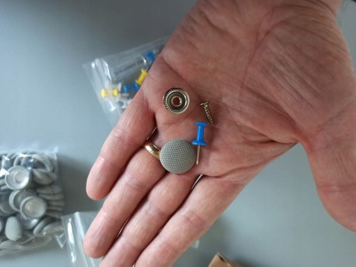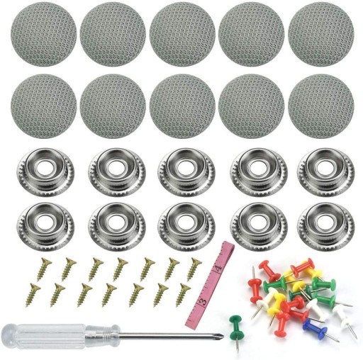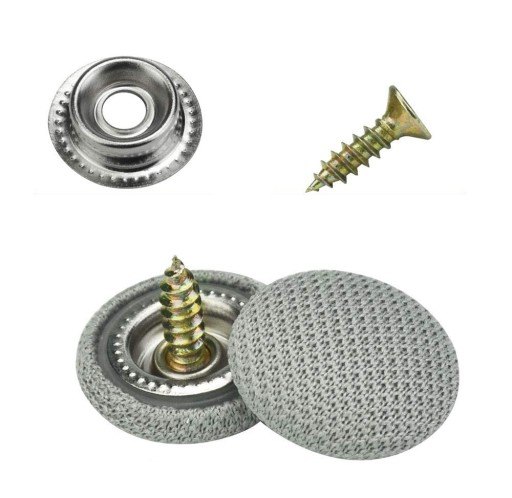 ✅ 62 kompletów szarych guzików pokrytych materiałem podobnym do podsufitki