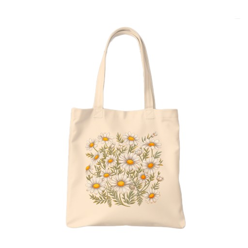 Wzór z rumiankami, symbolem czystości i delikatności, sprawia, że ta torba przypomina prawdziwy bukiet świeżych kwiatów. Ten design wnosi jaskrawe i radosne momenty do twojego życia oraz przypomina o pięknie natury. To idealny wybór dla miłośników prostoty i elegancji.