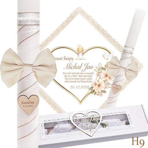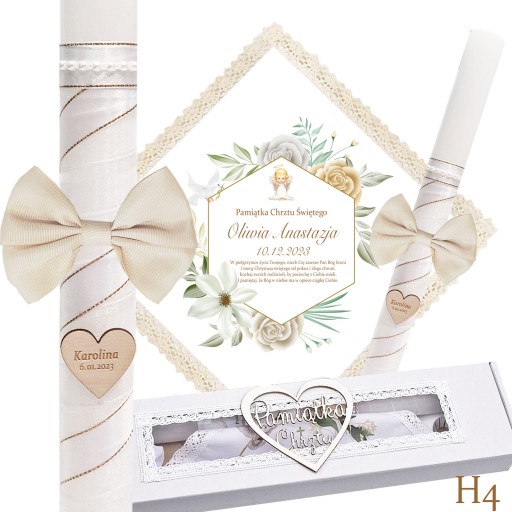 Zapraszamy do zakupu naszego wyjątkowego zestawu szatki i świecy do chrztu, który z pewnością stanie się piękną i niezapomnianą pamiątką tego ważnego wydarzenia. Nasza szatka wykonana jest ze śnieżnobiałego materiału, a jej obszycie bawełnianą koronką w kolorze beżowym dodaje jej uroku i elegancji.