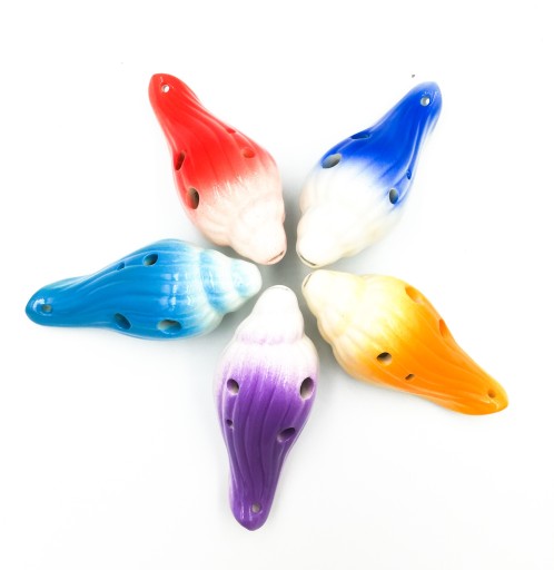Mini okaryna z sześcioma otworami. Wykonana z wysokiej jakości porcelany, pokryta lśniącym szkliwem.