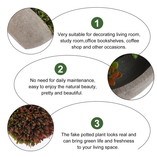 ✅Ten produkt to realistyczna dekoracja ze sztucznych roślin doniczkowych, wykonana z bezpiecznych i delikatnych materiałów. Ma doskonałe wykonanie, doskonały wygląd i dobry efekt dekoracyjny. Jest łatwy w użyciu i pielęgnacji oraz ma wyjątkowe znaczenie. Ponadto może być wykorzystana zarówno jako dekoracja salonu, jak i gabinetu.