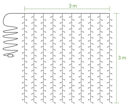 СВЕТОДИОДНАЯ СВЕТОВАЯ ЗАВЕСА 3x3 лампочки x 300 елочная гирлянда для окна