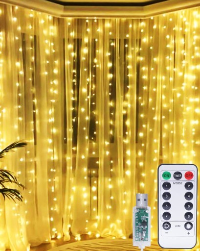 ⭐️ KURTYNA ŚWIETLNA LED DUŻA 3x3m Lampki Świąteczne Choinkowe Girlanda Na Okno⭐️