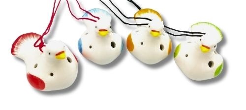 Mini okaryna z 6 otworami w unikalnym kształcie gołębia, ręcznie malowana. Wykonana z wysokiej jakości porcelany, pokryta lśniącym szkliwem.