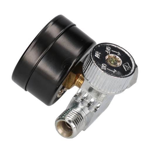 Regulator został wyposażony w pokrętło które umożliwia szybkie i dokładne regulowanie dopływu powietrza oraz manometr który pokazuje aktualne ciśnienie.