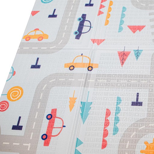 Mata z grafiką ulicy i lasu rozbudzi w dziecku ciekawość i chęć poznawania świata.