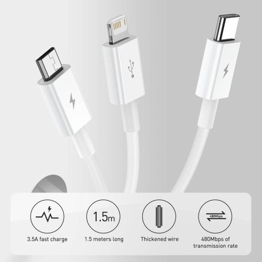 Baseus Superior 3w1 kabel USB - Lightning / USB Typ C / micro USB (ładowanie 3,5 A / przesyłanie danych 480 Mbps) 1,5 m