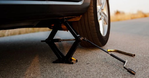 ⏺ Prezentowany podnośnik sprawdzi się przy prostych naprawach mechanicznych - na przykład wymiana koła.