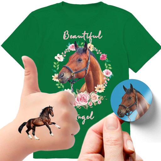 ZESTAW KOSZULKA + TATUAŻE NAKLEJKI KONIE 140