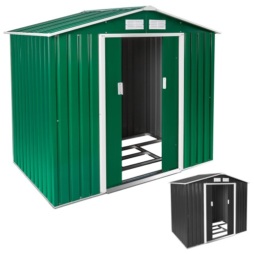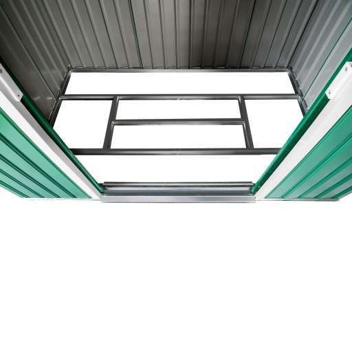 Praktyczne miejsce magazynowe z osłoniętą powierzchnią! Domek ogrodowy pomieści wiele narzędzi, przyrządów i mebli ogrodowych. Solidna szopa narzędziowa zapewnia nie tylko ochronę przed wiatrem i deszczem, lecz również przed brudem i pyłem. Na przesuwanych drzwiach można zamontować kłódkę zabezpieczającą przed kradzieżą. Ze względu na właściwości materiału – lakierowanej, stalowej blachy – jest bardzo trwały i nie wymaga konserwacji. Metalowy fundament gwarantuje stabilność. W zależności od potrzeb można dodać podłogę (we własnym zakresie). Przesuwane drzwi umożliwiają wygodny dostęp i oszczędzają dostępne miejsce. Domek ogrodowy jest dostępny w formie gotowego zestawu, dzięki czemu jego montaż jest szybki i łatwy. To wszechstronny składzik do Twojego ogrodu o ponadczasowym wyglądzie.