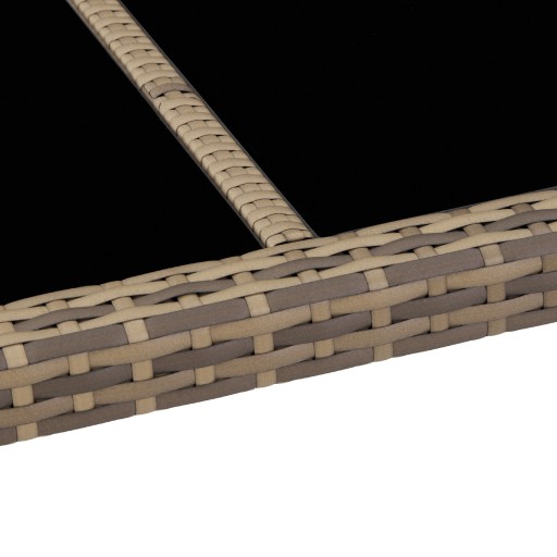 - Materiał: stelaż ze stali, rattanowa plecionka z poliuretanu, śruby ze stali nierdzewnej, elementy ze szkła