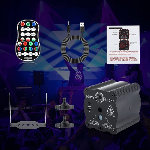 - oświetlenie imprezowe , 60 kombinacji wzorów, siedem kolorów tła, 4 funkcje timera (1, 3, 6, 8 godzin), oświetlenie imprezowe może przełączać dziewięć trybów pracy (6 trybów 3 tryby tonowe), aby stworzyć fajna imprezowa atmosfera.