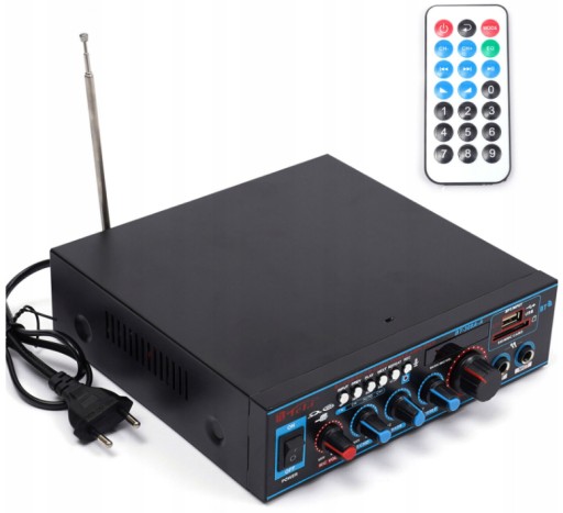Specifications: Specifications: Color: Black Model: BT-309A Input voltage: AC 220V/ DC12V(in car) Plug: EU plug bluetooth: Support Peak power:40W 40W Channel: 2 CH Load impedance: 4-16Ω SNR: >88 db FM frequency: 87.5-108MHz Distoration rate: 0.05% Frequency: 10Hz-20KHz Sensitivity: 0.25mV-220mV RC power supply: CR2052 battery(built-in) Size: Approx. 20x20.5x5.5cm/ 7.87x8.07x2.17''