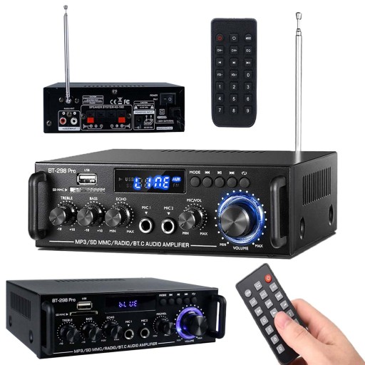 - Ten domowy wzmacniacz audio z Bluetooth, AUX, MIC, SD, wejściem USB i dźwiękiem z urządzeń zewnętrznych,