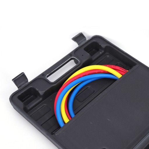 3 x Węże 1,5 metry (niebieski, żółty, czerwony) 1/4 SAE-1/4 SAE do czynnika chłodniczego R134a
