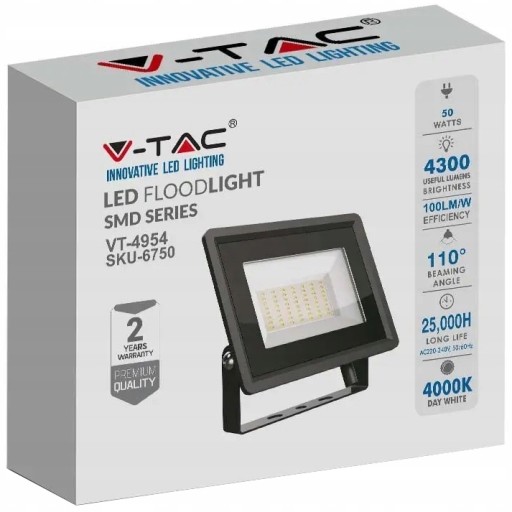 V-TAC NAŚWIETLACZ LED HALOGEN ZEWNĘTRZNY NEUTRALNY ROBOCZY IP65 50W CZARNY