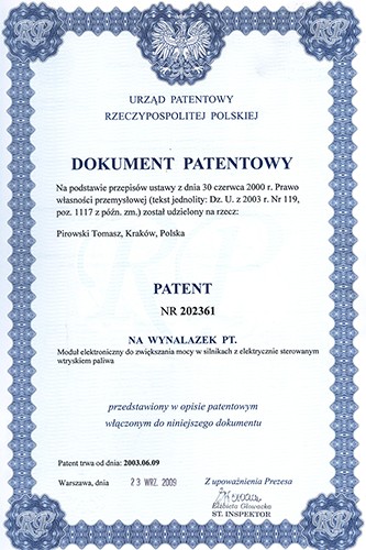 PowerBox jest certyfikowany certyfikatami CE, E20 10R-03 2680 i objęty patentami WO2008130257A1, P.360569.