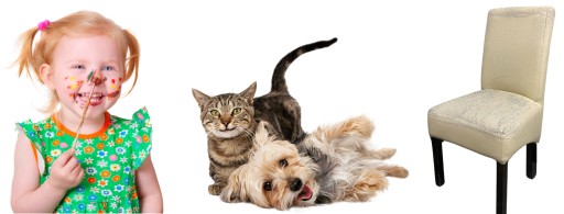 ✅ zabrudzeniami spowodowanymi przez jedzenie, zabawę dzieci farbami, kredkami, plasteliną itp.