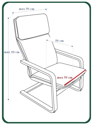 Na grafice obok znajdują się wymiary na jakie pasuje nasz pokrowiec. Jeśli masz +- 2 cm większy/mniejszy fotel - nasz pokrowiec nadal będzie pasował!