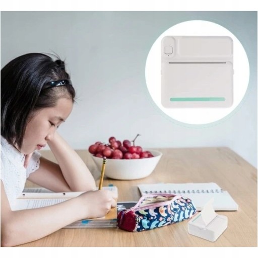 - Poręczna drukarka przenośna do drukowania materiałów edukacyjnych, notatek, dokumentów, etykiet, przypomnień, ściąg, naklejek itp.
